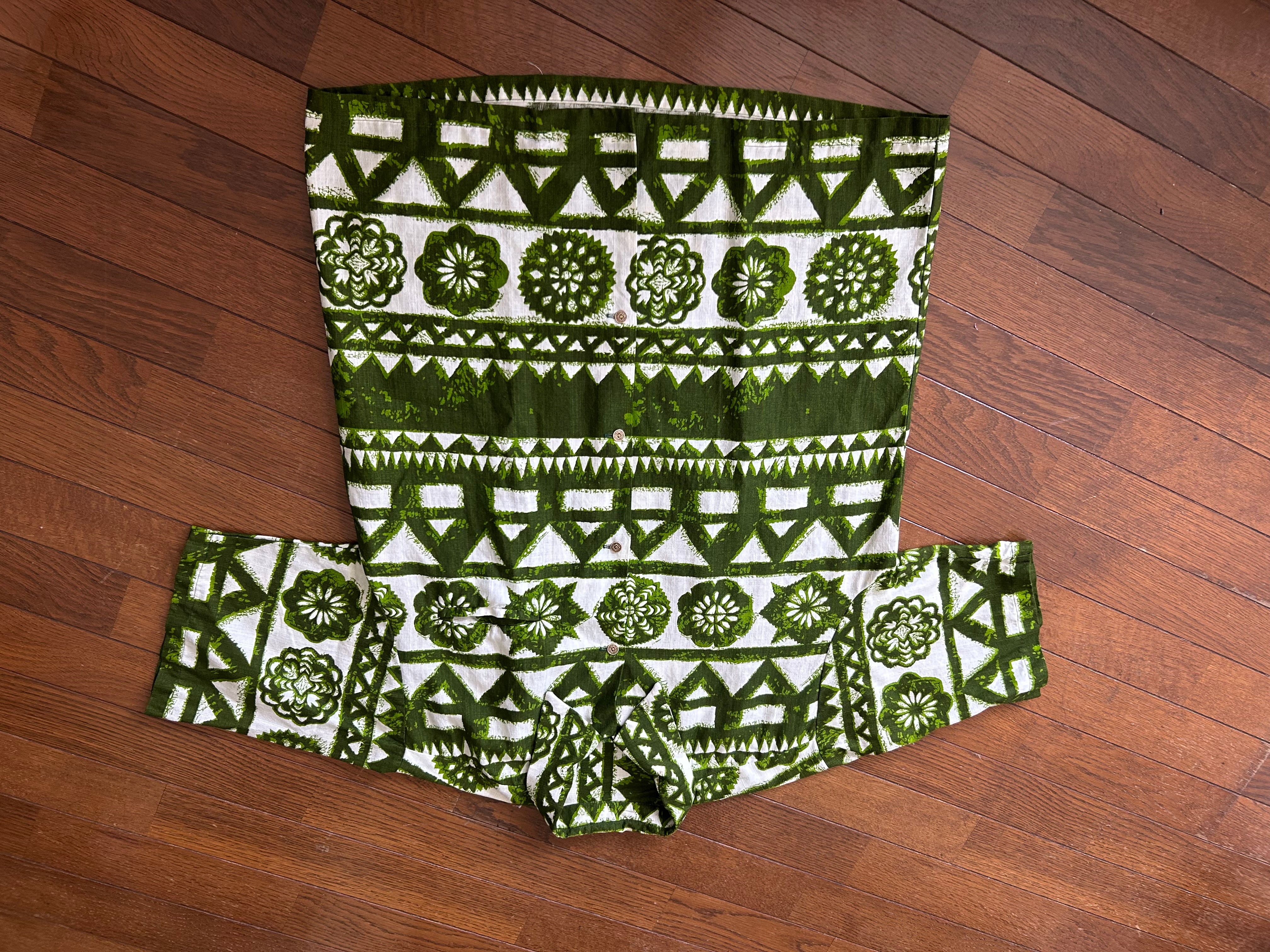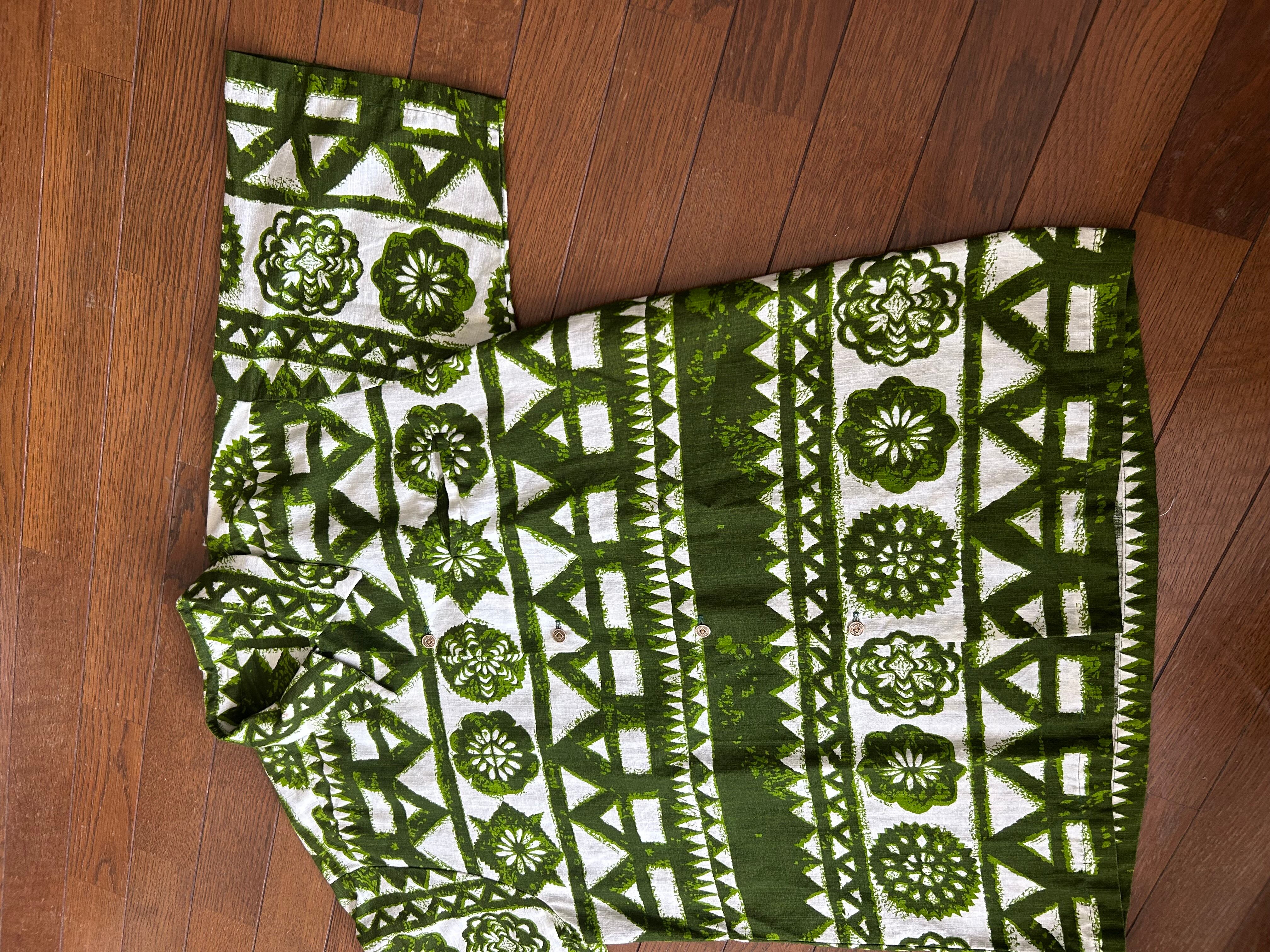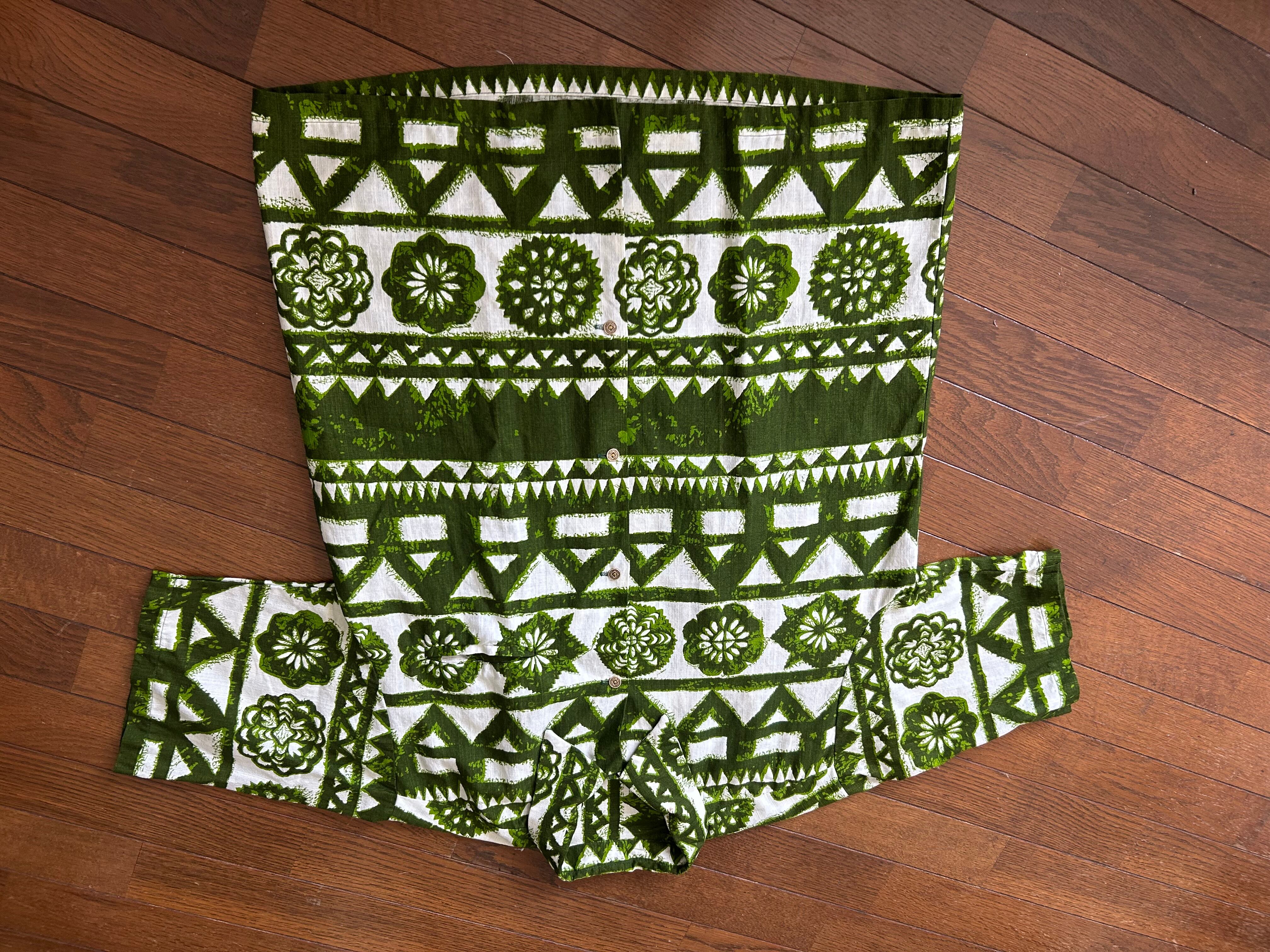 タグがないためブランド不明ですが銭ボタン使用のアロハシャツになります。