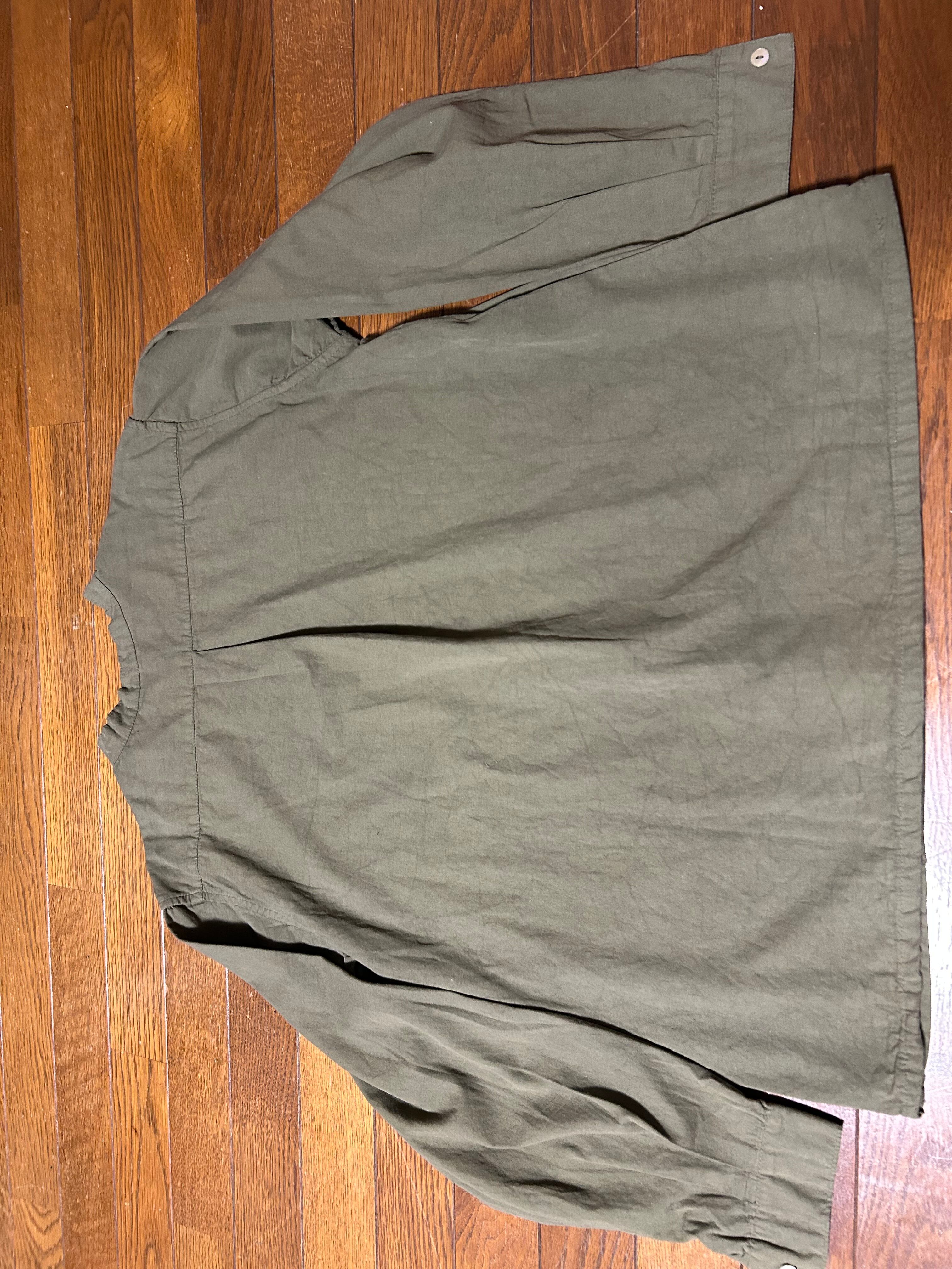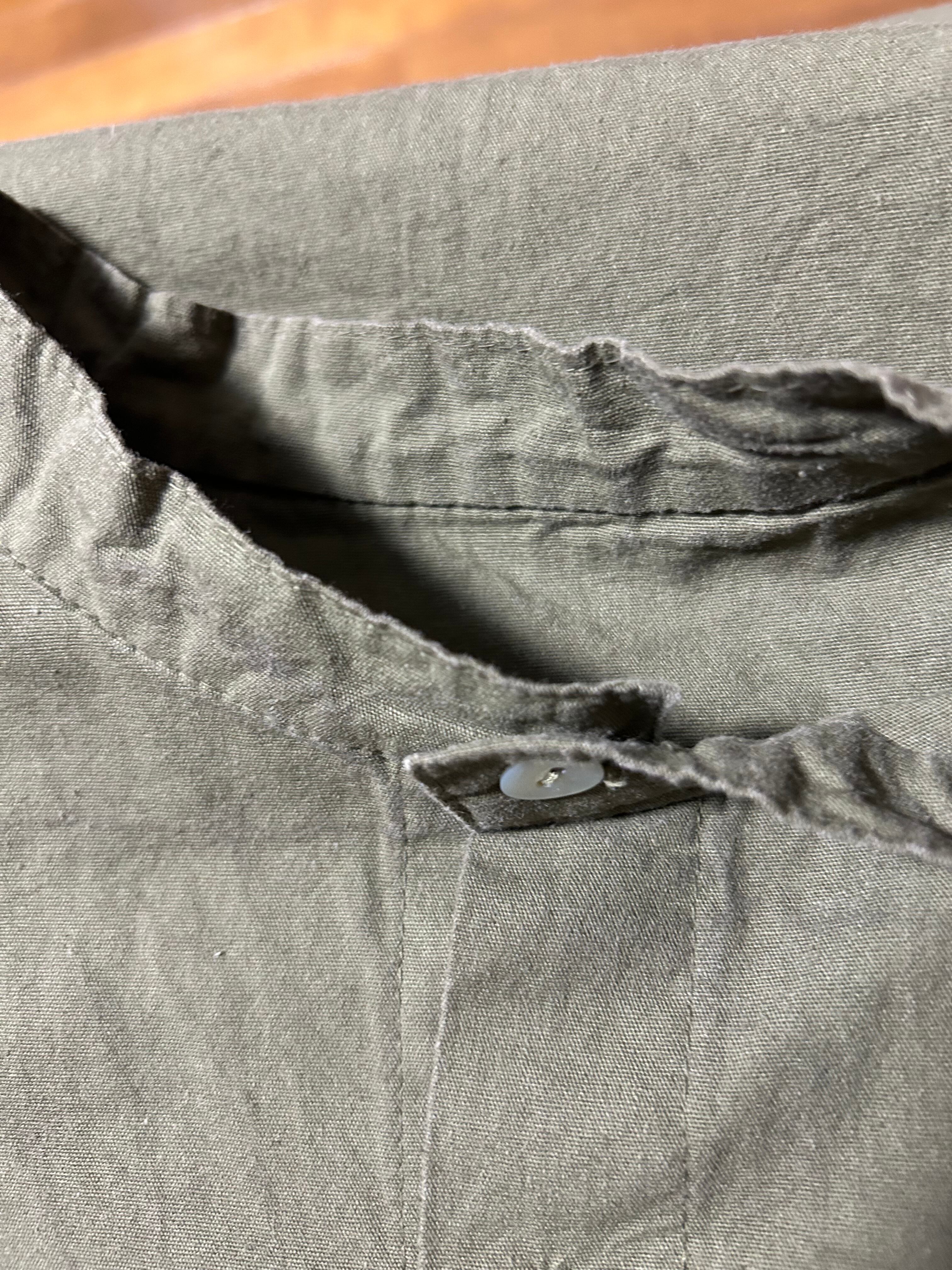 ノーカラープルオーバーシャツになりますタグなしのためメーカー不明ですが無地で短丈のグランパは珍しいです。ダメージ汚れなくサイズも大きめですので是非