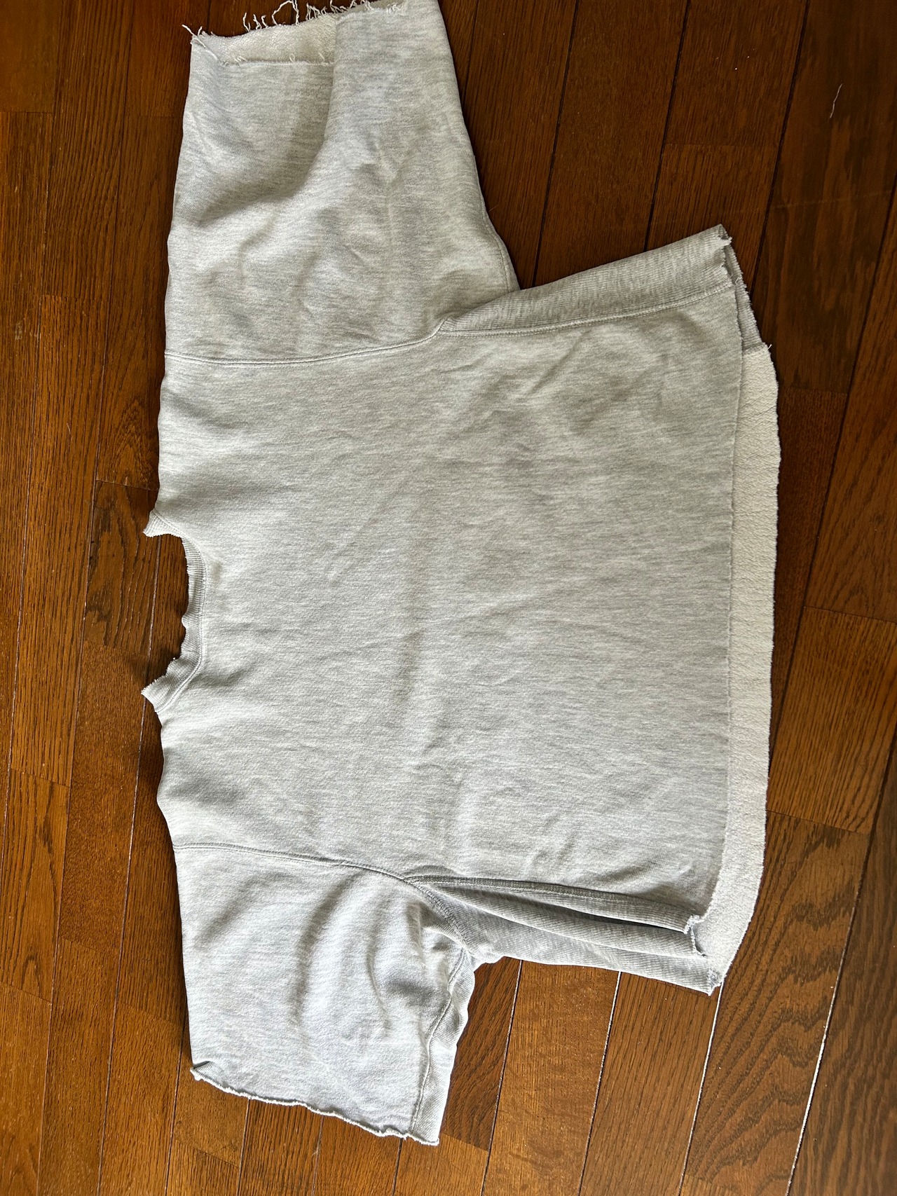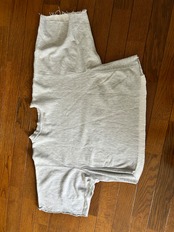 トリコタグのチャンピオンリバースウィーブの袖と胴体を切られた状態の